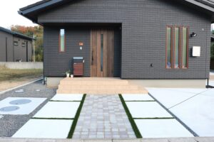 出雲市 外構工事 デザイン性のある門柱とアプローチの仕上がり